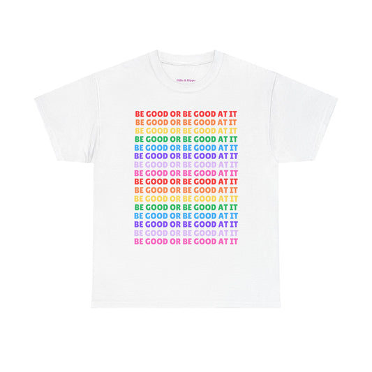 Be Good or Be Good at It - Multi Rainbow Pattern // Motivational Unisex Heavy Cotton Tee
