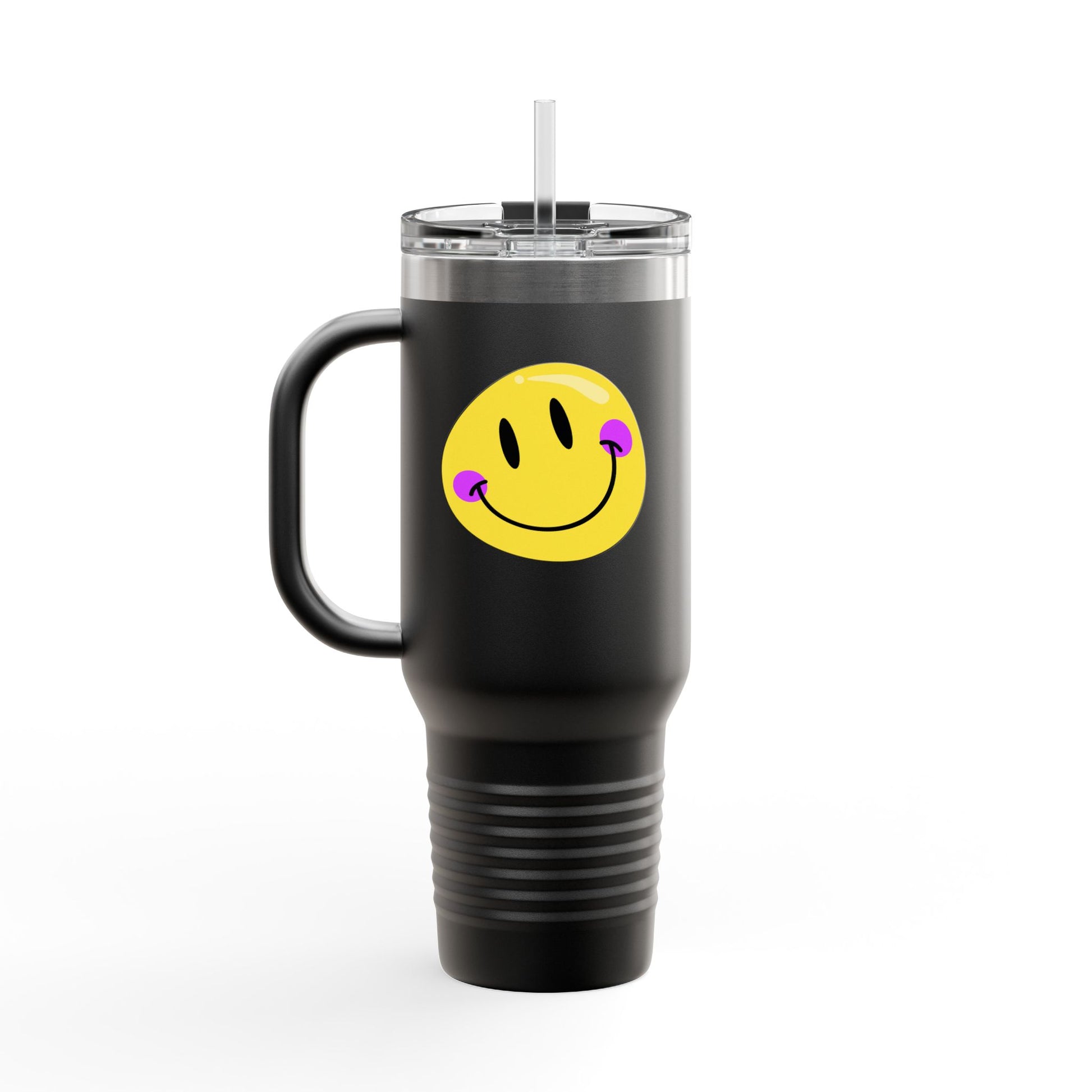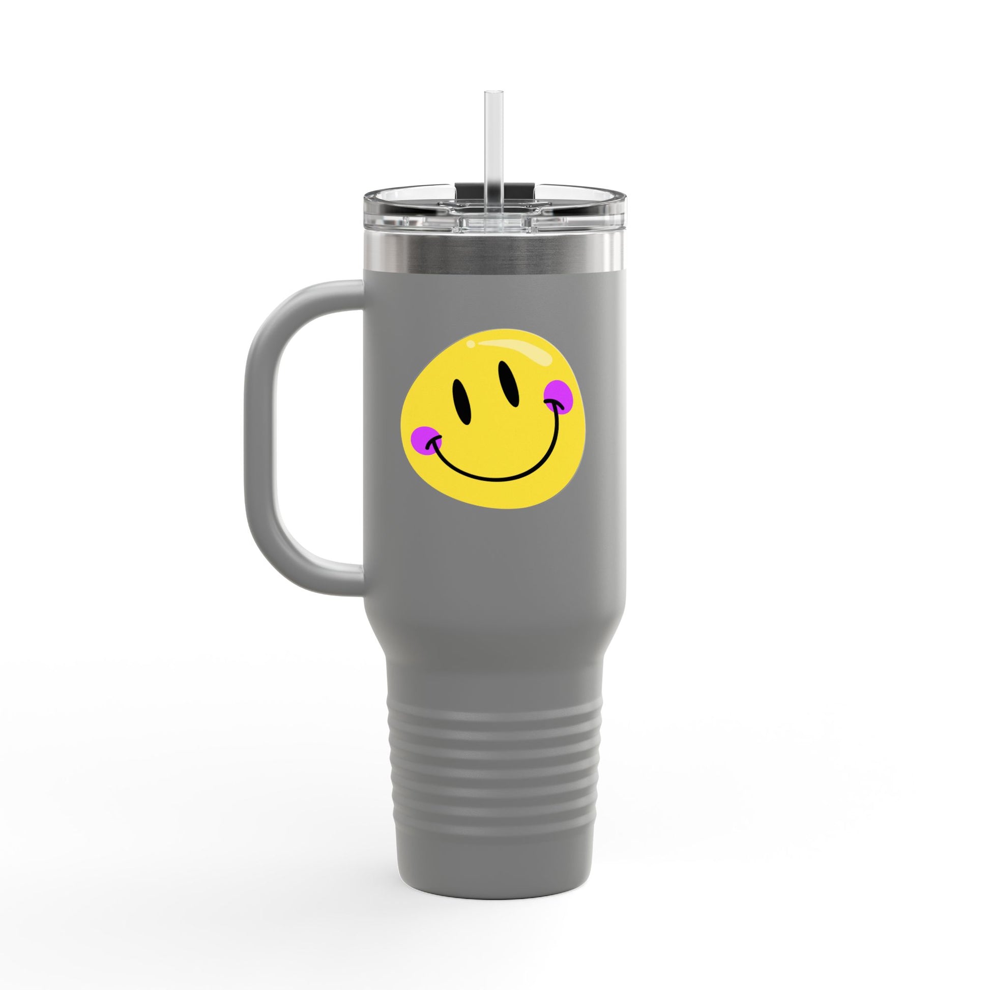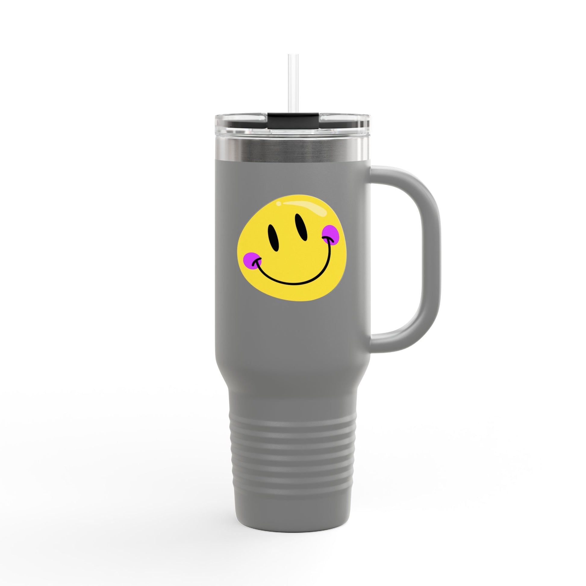 Crooked Smiley // Insulated Travel Mug, 40oz - Blue Text