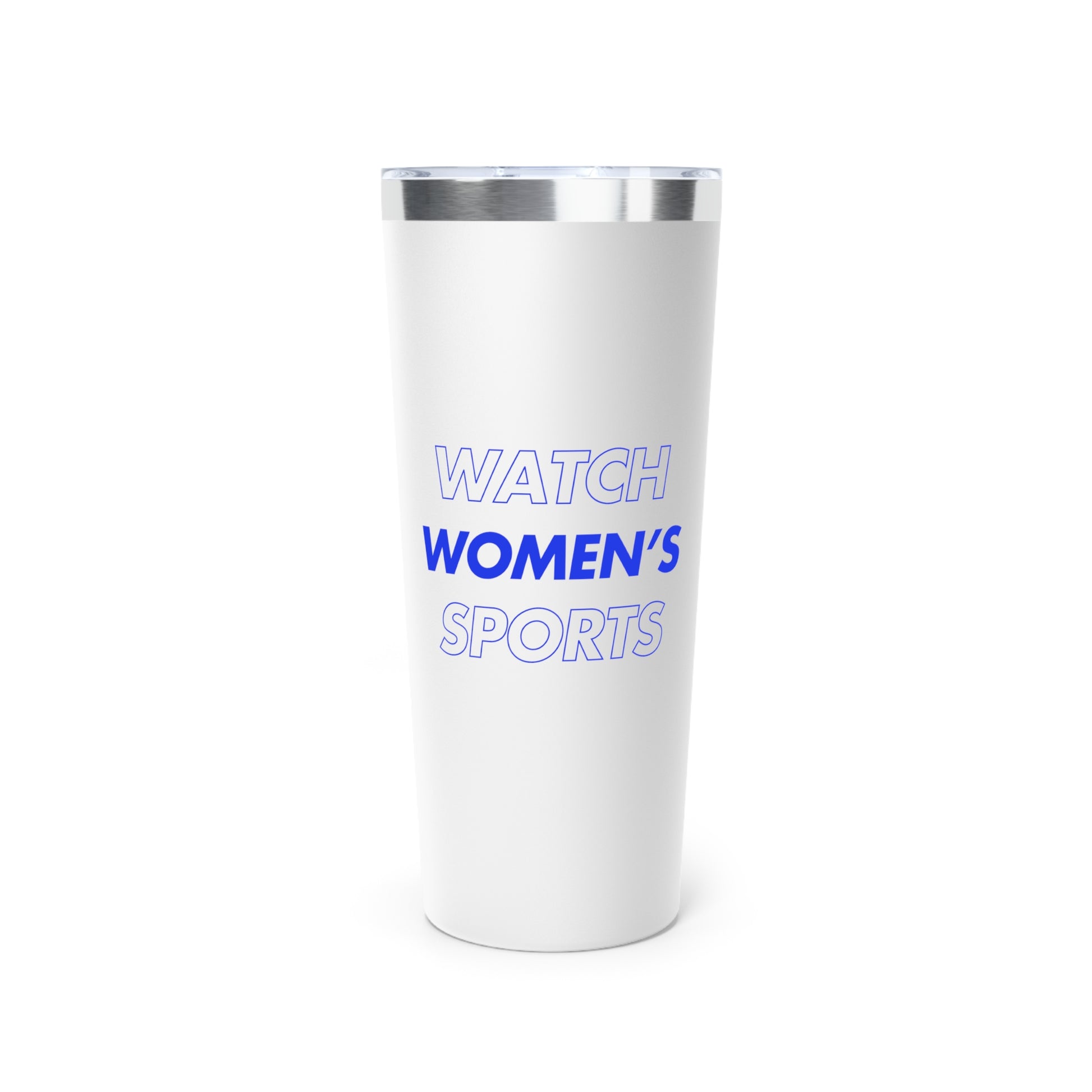 Watch Women's Sports // Copper Vacuum Insulated Tumbler, 22oz - Blue Text